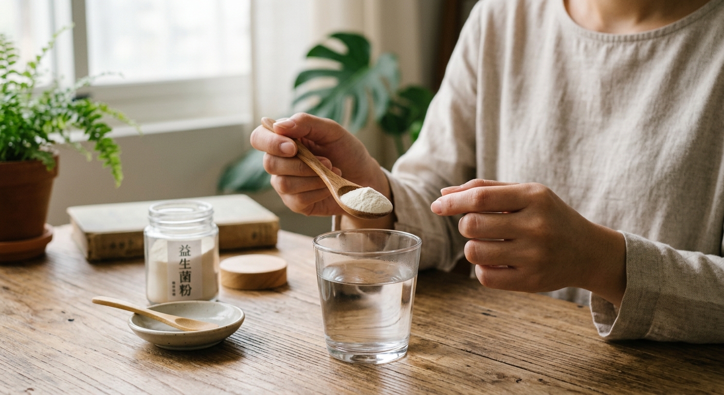 你可以將益生菌粉末撒在溫度不超過 40 度的溫涼食物上(如優格、沙拉),或者在吃完飯後立刻配水吞服。利用食物作為天然的防護罩,幫助這些未經特殊包埋處理的菌株安全過關,進而發揮幫助維持消化道機能的理想效果。