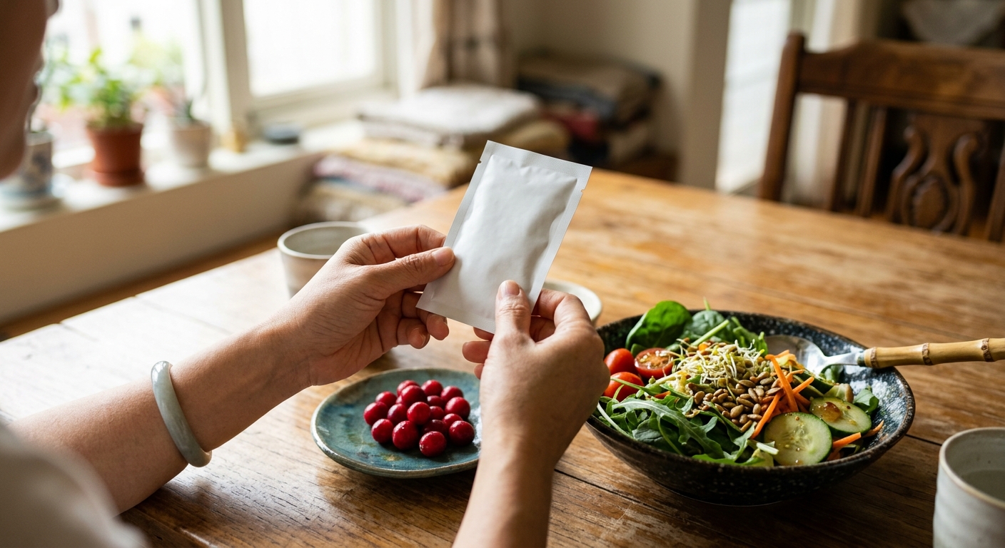 關於蔓越莓益生菌飯前還是飯後補充,飯後食用同樣擁有堅實的科學依據。進食後,食物會發揮緩衝作用,創造相對溫和的消化道環境。針對特定的乳酸桿菌(Lactobacillus)系列菌株進行的人體臨床試驗顯示,在飯後 30 分鐘內服用,其存活率與定植表現有顯著改善。這說明益生菌服用時間並非一體適用,而是與菌株本身的耐受度息息相關。
